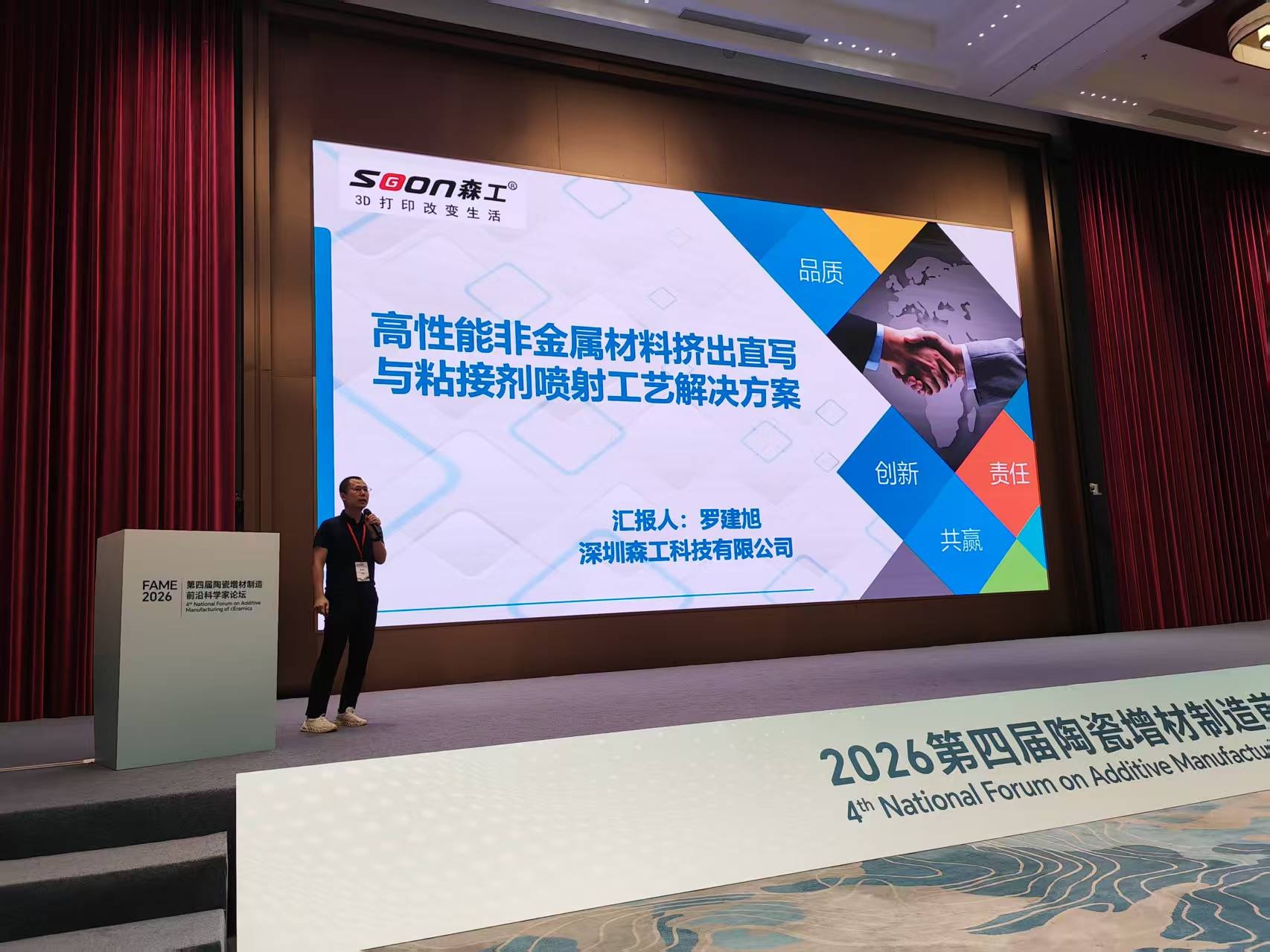 森工科技亮相第四届陶瓷增材制造前沿科学家论坛 罗建旭发表“高性能非金属材料挤出直写与粘接剂喷射工艺解决方案”主题报告