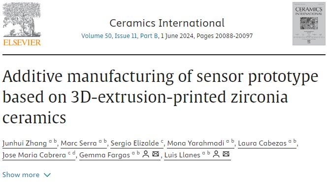 加泰罗尼亚理工大学在《Ceramics International》发表了题为《Additive manufacturing of sensor prototype based on 3D-extrusion-printed zirconia ceramics》的研究,采用了DIW墨水直写陶瓷3D打印机来制备不同方向纤维取向的氧化锆样品,并通过银导电墨水在样品表面形成传感器。