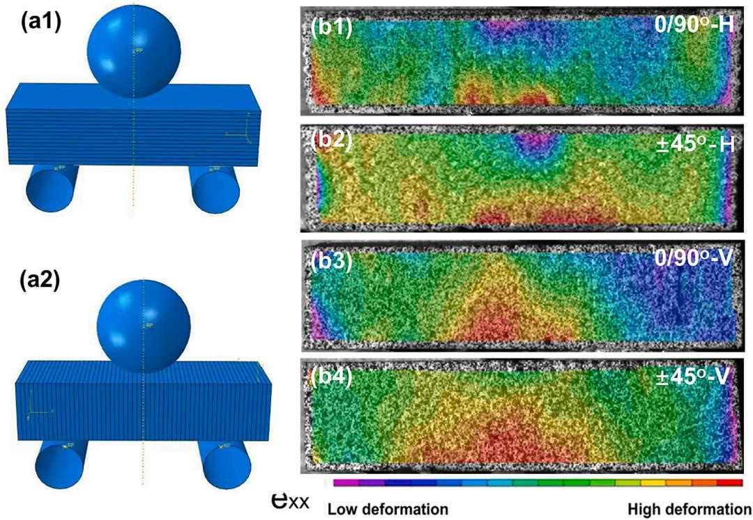 结合DIC技术分析了不同打印设计在受力下的应变分布情况。结果显示,±45°取向的样品在受力时应变分布更为均匀,而0/90°取向的样品则表现出更集中的应变区域,这可能与裂纹的起始和扩展路径有关。