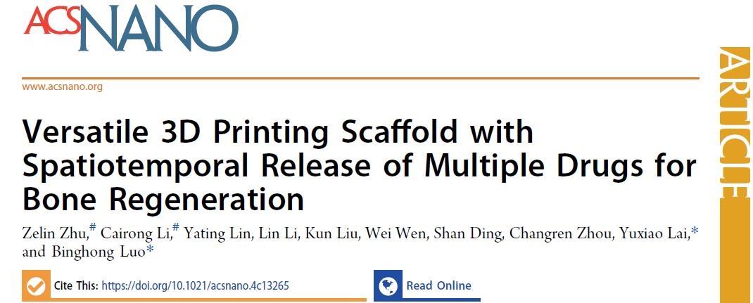 近日,暨南大学罗丙红教授团队联合中国科学院深圳先进技术研究院的赖毓霄研究员团队共同开发了一种具有多种药物和活性分子分时控释的多功能3D打印促骨再生支架。