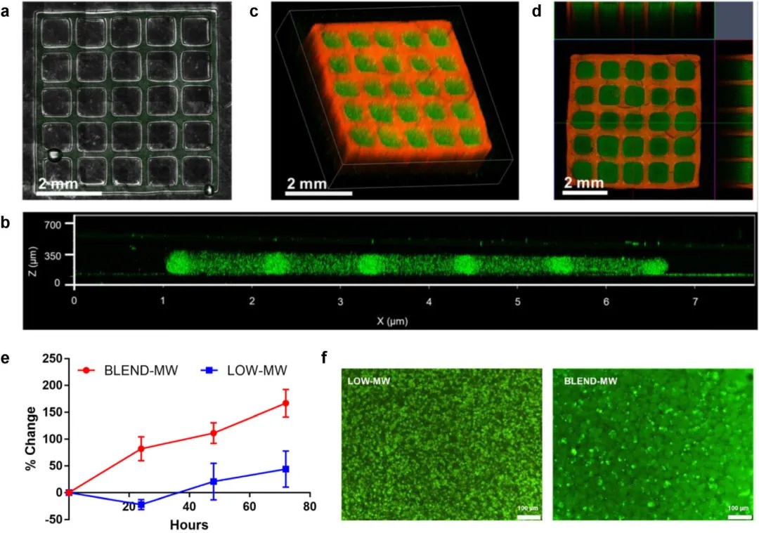 基于光的3D打印(如数字光处理,DLP):利用图案化光选择性交联光敏生物墨水,逐层构建细胞封装的3D结构,具有高通量和高分辨率,但需要低粘度的光交联生物墨水。