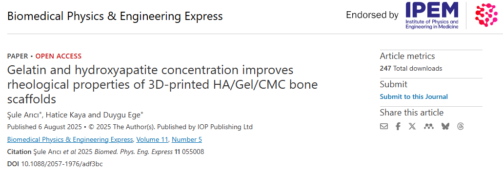 论文题目:Gelatin and hydroxyapatite concentration improves rheological properties of 3D-printed HA/Gel/CMC bone scaffolds