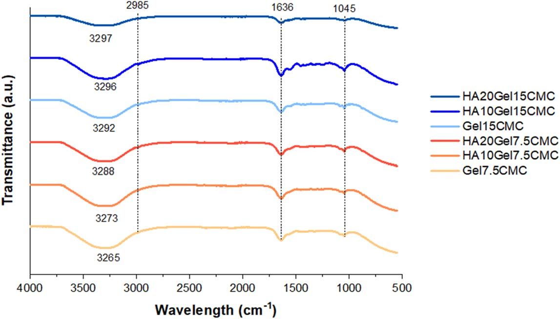 | HA10Gel15CMC | 10% | 15% | 7.5% |