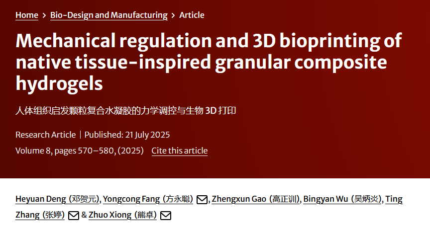 标题:Mechanical regulation and 3D bioprinting of native tissue-inspired granular composite hydrogels