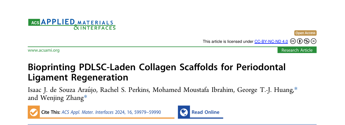 题目:Bioprinting PDLSC-Laden Collagen Scaffolds for Periodontal Ligament Regeneration