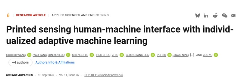 | 论文标题 | Printed sensing human-machine interface with individualized adaptive machine learning |
