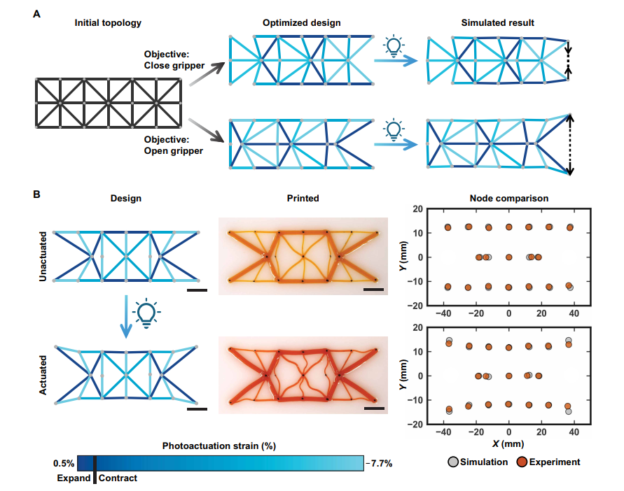 目前,相关研究在响应材料、制造能力和仿真模型方面取得了一定进展,已开发出能对热、光、湿度等多种刺激做出反应的材料系统,并应用于微创手术、药物递送等多个领域。但现有研究多侧重于制造创新,缺乏有效的逆向设计方法,大多依赖人类经验或启发式方法设计,难以实现复杂的形状变形行为。同时,现有逆向设计方法多针对单一刺激(尤其是热刺激),且未充分考虑制造过程的优化,无法满足多刺激响应材料系统的设计需求。
