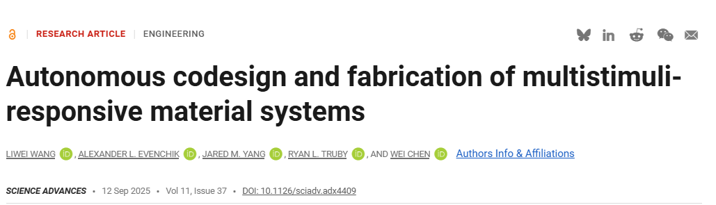| 标题 | Autonomous codesign and fabrication of multistimuli-responsive material systems |