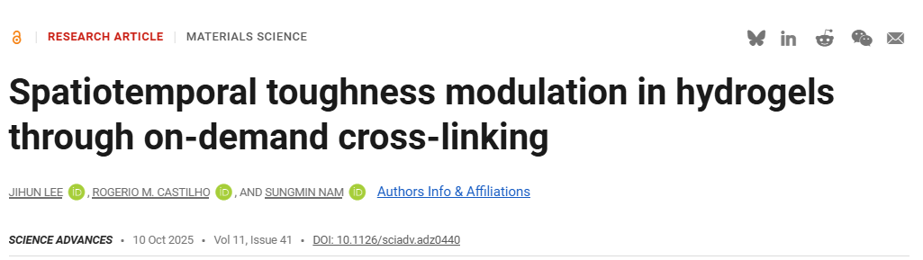 尽管已有诸多进展,但实现水凝胶韧性在空间和时间上的精确动态控制仍是关键挑战。时空可调性有望极大拓展水凝胶在复杂异质系统中的功能,例如可编程材料、自适应机械界面或基于环境信号响应进化的软器件。现有研究中,空间控制主要依赖3D打印技术,时间控制多通过顺序交联策略实现,但将两者整合到单一水凝胶结构中的策略仍未得到充分探索。