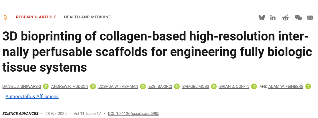 英文标题:3D bioprinting of collagen-based high-resolution internally perfusable scaffolds for engineering fully biologic tissue systems