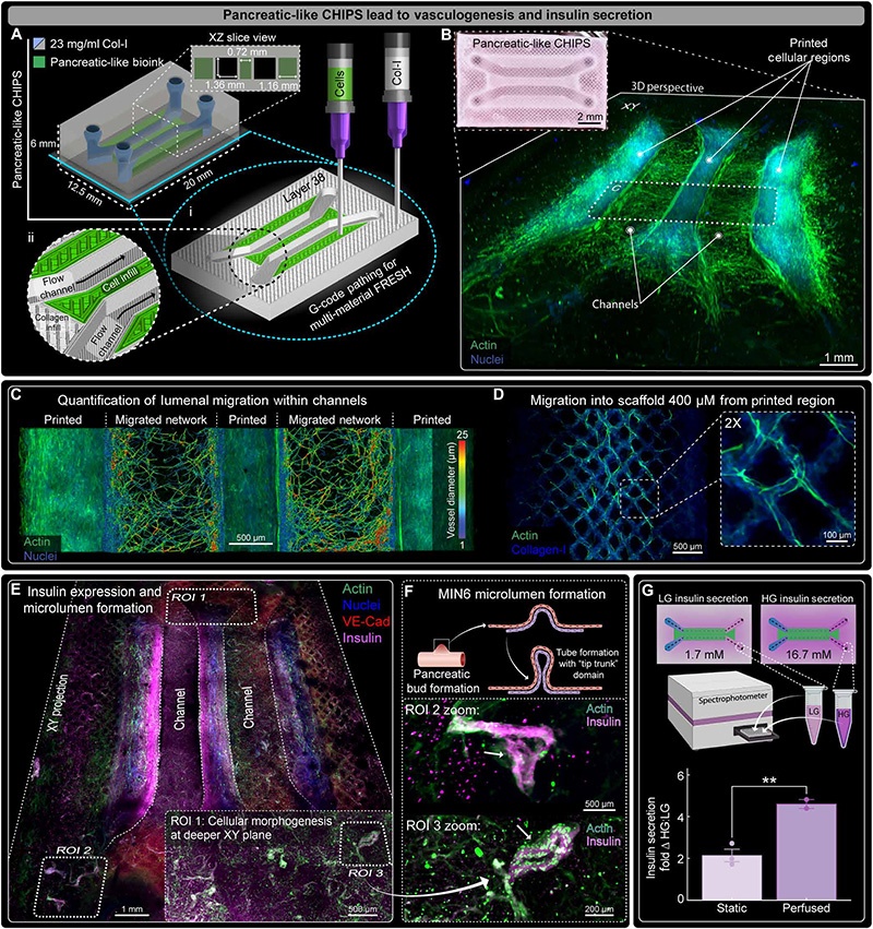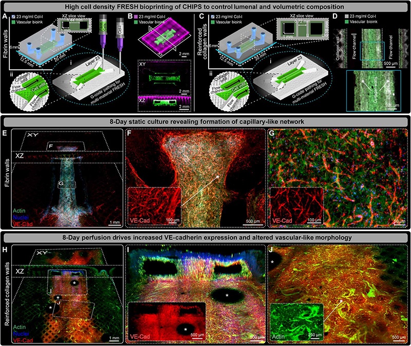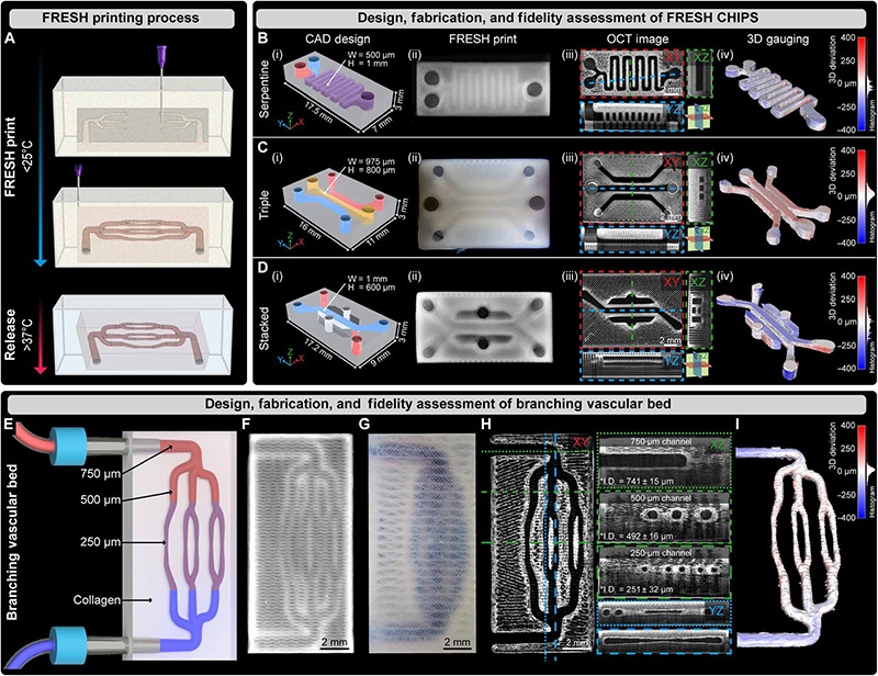 心血管系统是所有脊椎动物发育的关键,负责为组织和器官输送氧气与营养,并清除代谢废物。然而,构建具有可灌注流体网络的组织工程支架一直是生物工程领域的重大挑战。