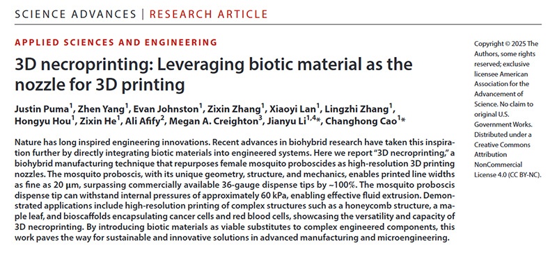 | 论文标题 | 3D necroprinting: Leveraging biotic material as the nozzle for 3D printing |
