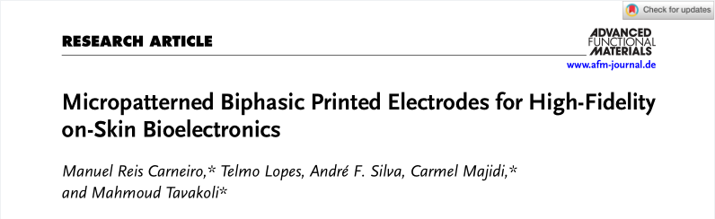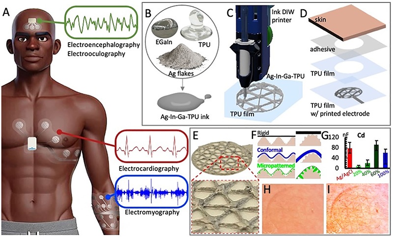 论文标题:Micropatterned Biphasic Printed Electrodes for High‐Fidelity on‐Skin Bioelectronics