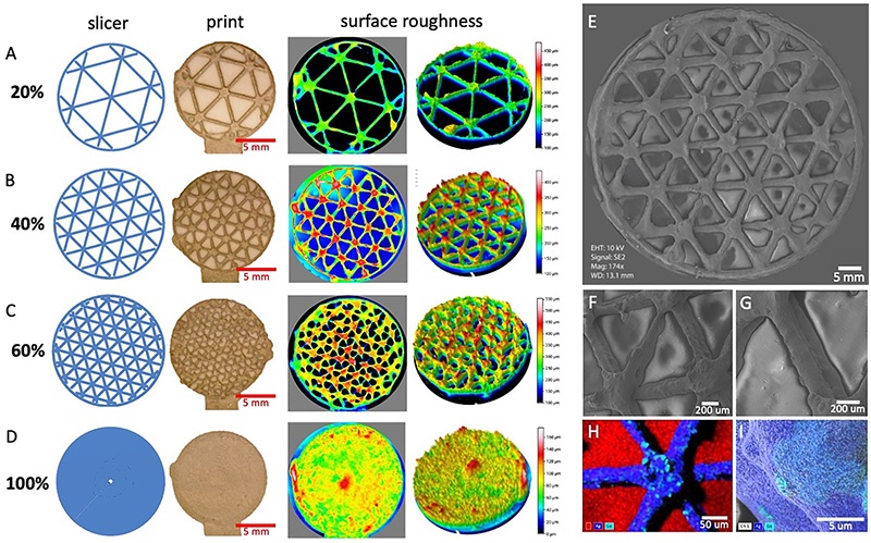 通过调控印刷填充率(infill percentage),研究优化了电极表面微结构,使其更好地贴合皮肤微纹理,从而显著降低皮肤-电极接触阻抗,并提升信号质量。