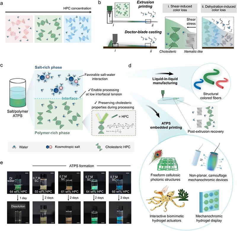 | 核心关键词 | 双水相体系、嵌入式3D打印、绿色制造、羟丙基纤维素、结构色、力致变色 |