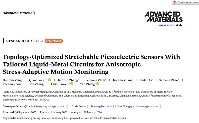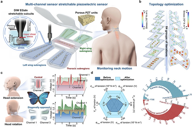 | 论文标题 | Topology-Optimized Stretchable Piezoelectric Sensors With Tailored Liquid-Metal Circuits for Anisotropic Stress-Adaptive Motion Monitoring |