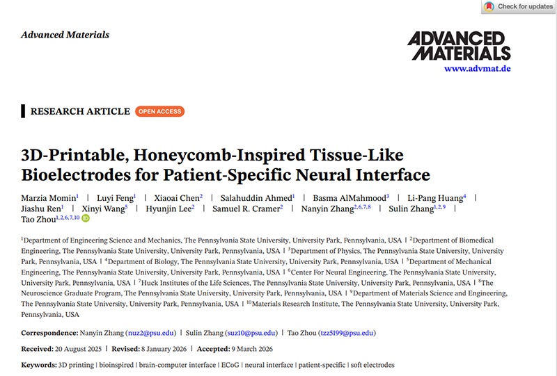 通讯作者:Nanyin Zhang (nuz2@psu.edu)、Sulin Zhang (suz10@psu.edu)、Tao Zhou (tzz5199@psu.edu)