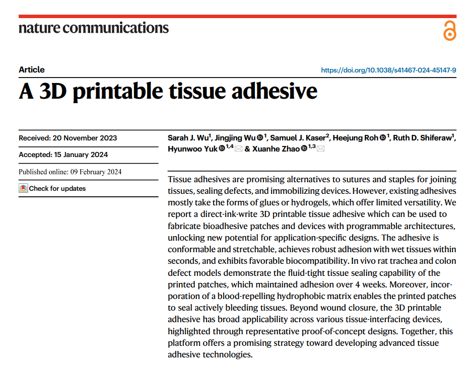突破伤口闭合的单一应用,利用该3D打印平台,开发了多种一体化组织界面器件,拓展了应用边界: