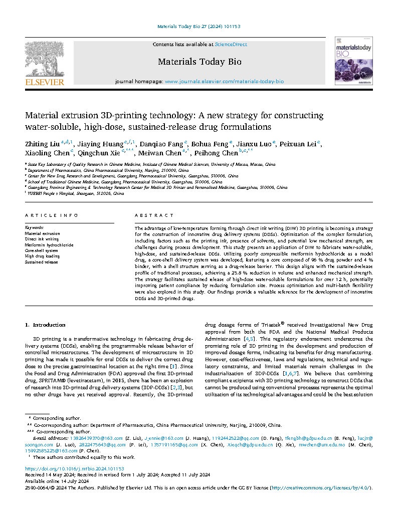 Material extrusion 3D-printing technology: A new strategy for constructing water-soluble, high-dose,